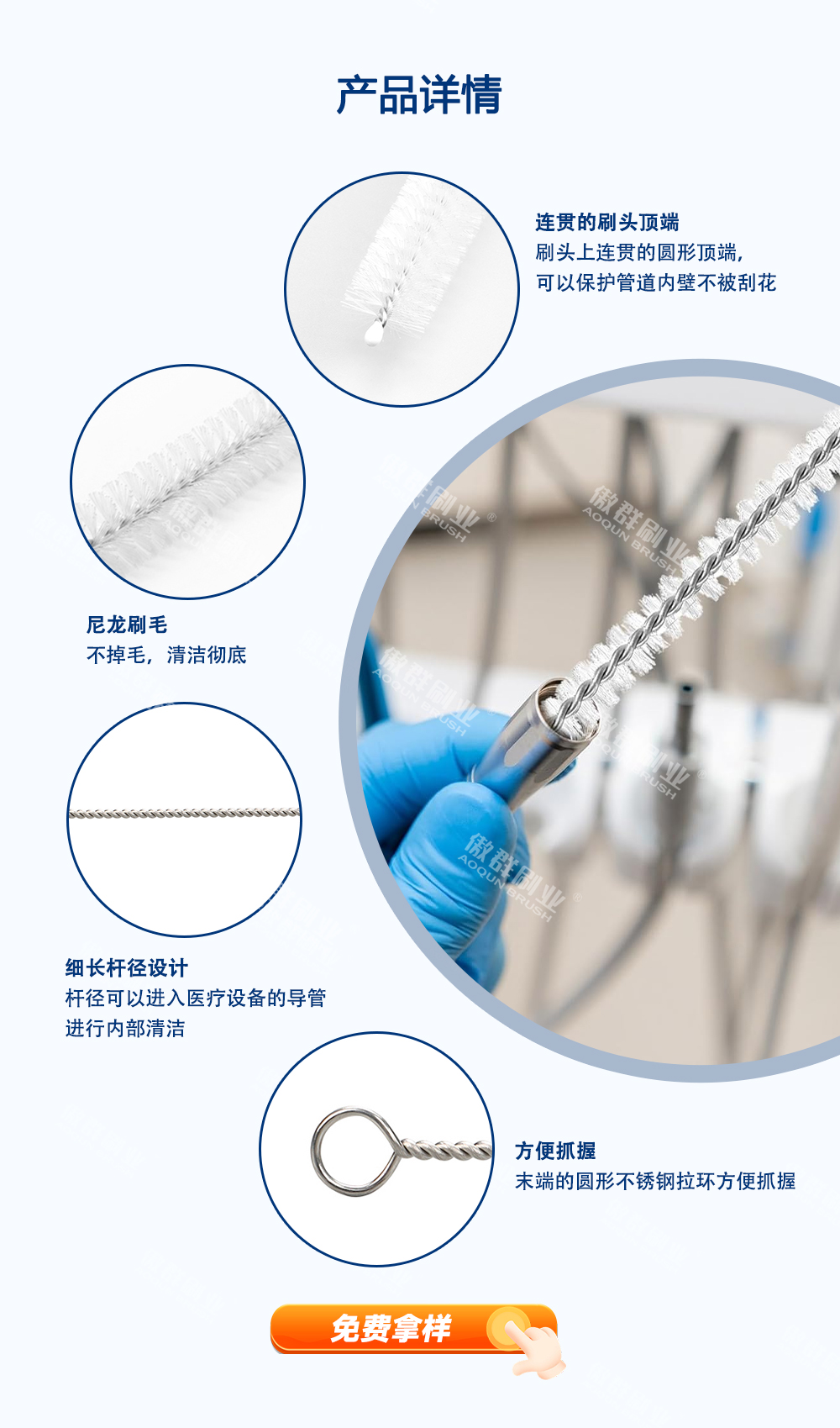 • 功能/用途:用于清潔柔軟的氣管造口術導管,瓶子、燒杯、漏斗等物品清潔。